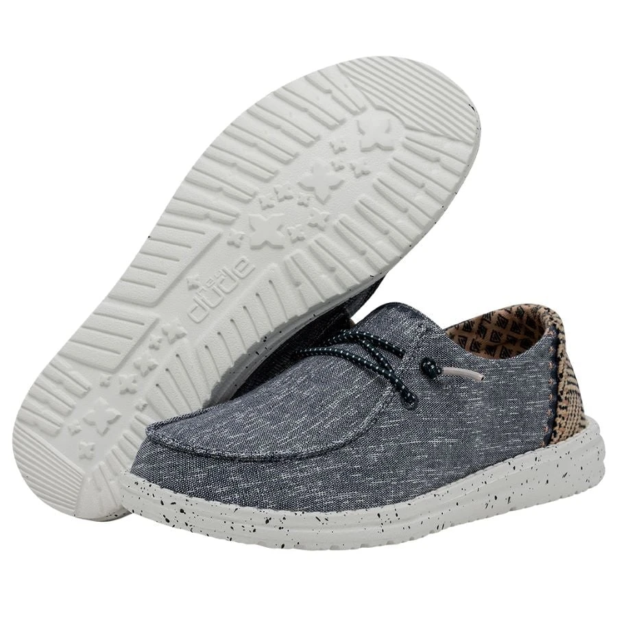 Our most popular moc meets soft chambray-cotton throughout. The Wendy Chambray collection embodies the Hey Dude lifestyle by combining our passion for comfort and quality. Created with a soft, chambray-blend upper, finished off with an easy-on, elastic lacing system and an ultralight outsole for extra comfort. This design is perfect for all day wear.